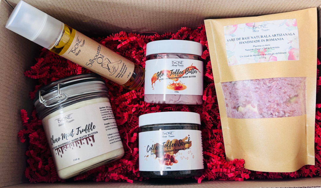 Descoperă rafinamentul absolut al cutiei Luxury Red, o selecție de produse premium, 100% naturale și realizate manual cu migală și pasiune. Fiecare creație poartă semnătura grijii autentice și a calității care definește BeOne Cosmetics— de la uleiul de corp Silhouette cu efect satinat, până la untul de baie care catifelează pielea și înlocuitorul gelului de duș, o formulă blândă ce curăță și hidratează în același timp.