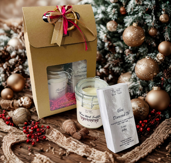 O cutie de Crăciun kraft, de dimensiune mai mare, cu mâner, decor de portocală uscată și panglică elegantă — un cadou spectaculos de pus sub brad! Poate fi personalizată cu produse din gama BeOne Cosmetics, pentru un moment de răsfăț complet, natural și plin de farmec festiv.