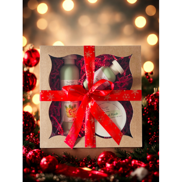 Descoperă rafinamentul în forma sa naturală cu această cutie Luxury BeOne Cosmetics, dedicată îngrijirii părului. Ambalată într-o cutie kraft de calitate superioară și legată cu o panglică amplă, elegantă, emană stil și delicatețe încă de la prima vedere.