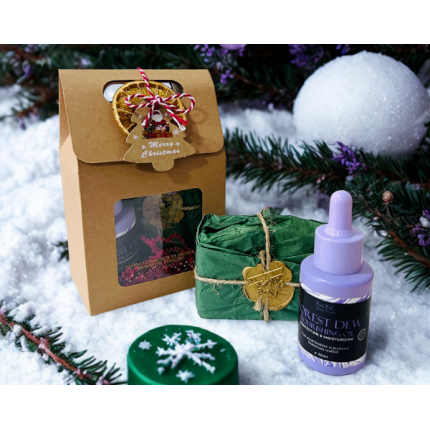 Christmas Beauty Box ~ Cutie kraft cu maner, decor de portocala si tag de Craciun ~ ulei pentru par + sapun solid ~ 100% natural
